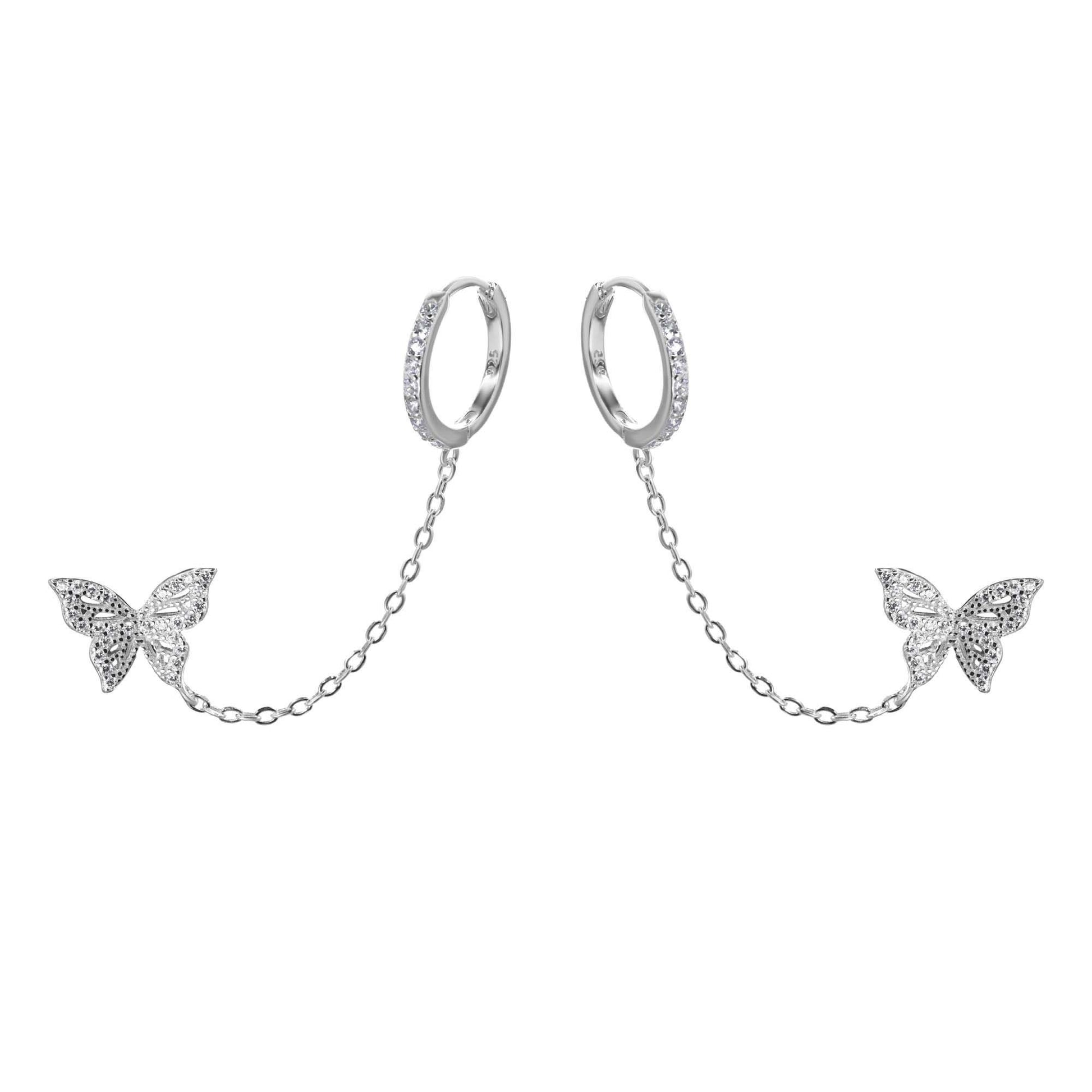 Argollas plata modelo cadena con mariposa